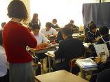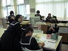 今日の5,6校時は総合的な学習の時間が計画されていました。1年生は、文化発表会の準備で、発表するテーマ毎に集まって発表準備を進めていました。2年生は、5校時に職場体験学習の事前準備を訪問する職場毎に行い、6校時は文化発表会の発表準備をすすめていました。3年生は、学級毎にテーマをもち、その発表の準備をしていました。本校の文化発表会は、総合的な学習の時間に学習したり調べたりしたことを基に、学年毎に発表します。