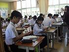 2校時は田中実習生の保健の研究授業が2年3組で行われました。題材は「健康と環境」(ゴミの処理)で、国富町のゴミの分別方法や1日1人あたり排出するゴミの量などを用いて指導していました。田中実習生、2年3組の皆さんお疲れ様でした。