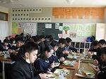 今日は3年生のとって最後の給食でした。それぞれの学級で思考をこらしていただいていました。義務教育9年間でたくさんの給食をいただきました。その最後の給食の味はいかがだったでしょうか。卒業後はほとんどの生徒が家庭から弁当をもって登校することになります。各家庭で「よろしくお願いします」とお願いしておきましょう。皆さんも弁当づくりを経験して大変であることはわかっていることでしょうが、それを毎日続ける保護者の皆さんに感謝してください。