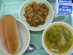 背割りパン レタススープ チリドッグの具 牛乳