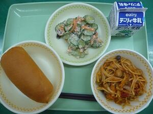 ミニミルクパン ひむかナポリタン ツナビーンズサラダ 牛乳