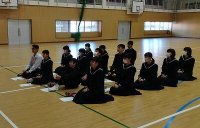 4日(日)の学校参観日に立志式を行い全学年生徒参加の予定でしたが、3年の生徒にインフルエンザに罹患する生徒が数名でました。つきましては、来週の水曜日が県立高校の推薦入試ということで、3年生の立志式への参加は見送り、1,2年生のみ参加することに変更させていただきました。どうぞご了承ください。