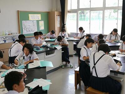 本日は中間テストの2日目、最終日です。生徒たちは昨夜遅くまで勉強を頑張ったことと思います。どのクラスの生徒も一生懸命に問題に取り組んでいる様子が見られました。