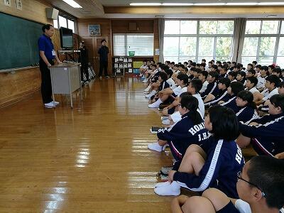 また、昼休み時間には部活動生集会が行われました。中体連夏季の地区大会が迫っていますので、その準備や心構え等について指導がありました。中間テストが終わりましたので、いよいよ部活動にも熱が入ってくることと思います。とくに3年生は最後の大会となりますので、悔いのない大会にしてほしいと思っています。