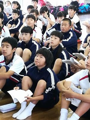 3年生は、福祉体験学習で手話教室を行いました。社会福祉協議会と連携して、手話サークル「道」より、講師の方にきていただき、体育館で多くのことを学びました。