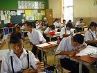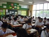 昨日は、国富町教育研究所の検証授業が行われ、1年3組の理科の授業を押方先生が行われ、町内の研究所の先生方が来られました。今日は東諸県郡特別支援教育研究会の授業研究会が本校であり、1年5組の授業を鳥枝先生が行われました。今日は郡内の9つの小中学校から10名ほどの先生が参加され熱心に授業を参観され、研究会をされていました。5組の生徒たち2名も緊張気味でしたが一生懸命に授業を受けていました。