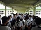 今日は国富町議会の文教産業常任委員会の皆さんが、昨年度改修工事をしていただいた体育館の様子の視察のためにご来校されました。1時間目の時間帯で1年3組の授業中でしたが、元気な生徒たちの動きに感心されながらの視察だったようです。議員さんの中には一昨日の体育大会にご出席いただいた議員さんもいらっしゃいましたので、ご出席のお礼をお伝えしたところでした。