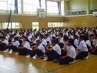 今日は朝の時間帯で全校集会(宮崎県中学校総合体育大会の選手激励式)を行いました。今回県大会への出場権を得たのは、女子バスケットボール、男子バレーボール、柔道女子個人戦、バドミントン男子団体・男女個人戦、弓道の5競技です。それぞれの競技で大会に臨む抱負を述べたあと、校長からの激励に続き、生徒代表の鴨河悠我くんが「県大会への出場がかなわず悔しい思いをした仲間の分まで戦ってきてください。応援しています」と選手たちを激励しました。そのあと、池宮瑞輝くん(バドミントンキャプテン)と寺原綾佑くん(男子バレーボールキャプテン)が「感謝の気持ちをもって戦ってきます」と力強く選手宣誓を行いました。県大会は7月24日(日)~27日(水)にかけて宮崎市内の会場を中心に行われます。選手の皆さん、宮崎地区の代表として精一杯戦い、本庄中学校の素晴らしさを出してきてください。そして、次の大会への切符を得ることができればとても素晴らしいことです。頑張ってきてください。