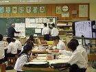 教室では、3年生は楽しそうに会話をしている生徒、勉強している生徒など、自分たちの時間として使っていました。2年生も余暇を楽しそうに使っていました。中には学級組織表を書いている生徒も見かけました。1年生は、学年のプログラム委員会をしていました。また、課題指導を受けている生徒もいました。