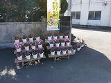生徒の一人一鉢運動で育てている花を正門に飾りました。