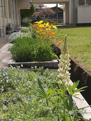 下は、今日初めて花壇に咲いたルピナスの花です。今年は、学校を花いっぱいにしたいと考えています!
