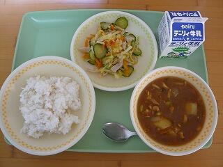 麦ご飯 みやざきじとっこカレー フレンチサラダ 牛乳