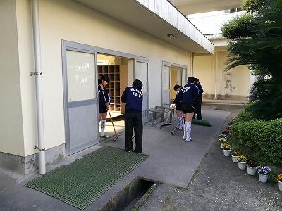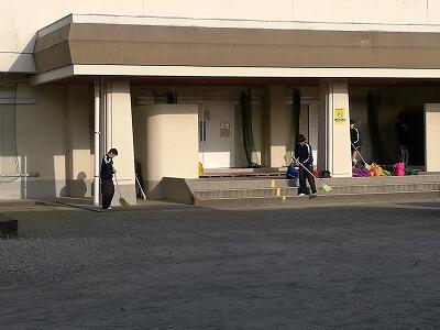 さて、下の写真は今朝8時からの部活動開始前に女子バレー部ば清掃をしてくれている様子です。写真には撮ることができなかったのですが、音楽部の生徒も毎朝草取りや花へ水やりをしてくれています。毎朝このような姿を見る度に温かいものを感じるとともに、今日もがんばろうという「やる気」をもらっています。生徒の皆さん、いつもありがとう!
