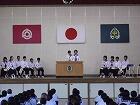 10月8日(木)の午後、生徒会役員改選に伴う立ち会い演説会と投開票が行われました。今回の選挙では、公職選挙法が一部改正され、選挙権が18歳に引き下げられたことを受けて、少しでも実際の選挙に近い形で行えるように工夫しました。投票の流れを、「投票所入場券を準備し、その入場券を引き替えに投票用紙を受け取り、記載台で記載し、投票箱に入れる」としました。中学3年生は15歳です。3年後には有権者となるので、選挙に参加する責任や投票する責任などを少しでも学んで欲しいと思いますし、投票の流れも学んで欲しいと思っています。