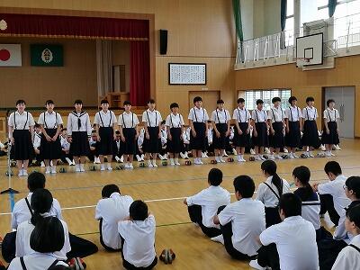 本日6校時終了後、体育館にて週末から行われます宮崎地区中体連大会の激励式を行いました。各部とも大きく元気な返事と、キャプテンのすばらしい内容の挨拶があり、とても頼もしく感じました。