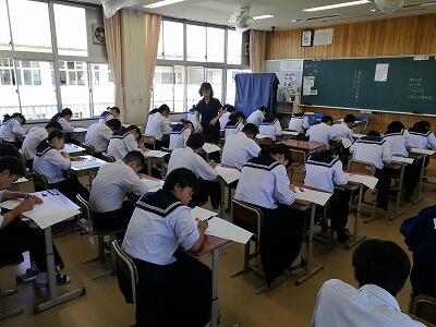 昨日、今日の二日間にわたり中間テストが行われています。どの学級を回っても真剣に問題に向かう姿が見られました。果たして勉強した成果は発揮されるでしょうか。現在、最後の科目に生徒は臨んでいます。