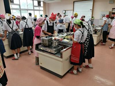 先日に引き続き、2年生の調理実習がありました。今回も食生活改善推進委員会の方々にご指導いただきました。生徒たちの普段の授業とは違った表情で楽しそうに取り組んでいました。