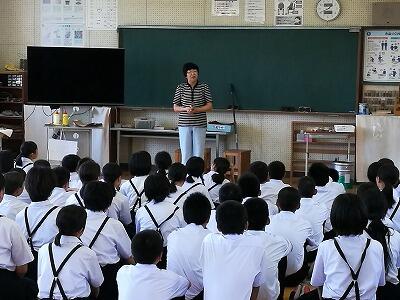 今朝は全校集会がありました。先日の中体連等の表彰をしました。県大会へ出場するのは剣道部とバドミントン競技、弓道競技、陸上個人となりましたが、皆さま方のお話では、どの部活動、競技も最後まで大変よくがんばった、いい試合だったということでした。県大会を逃した皆さんも、最後までやり通すことができたことを誇りに、次の学校行事等にがんばってくれることと思います。