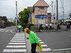 毎週月曜日と金曜日は交通指導員の皆さんに交通指導を行っていただいています。指導員の皆さんのご指導のお陰で通学時の交通事故を未然に防いでいただいています。生徒の皆さん、感謝の気持ちをもって大きな声であいさつをしてください。(交通指導の様子と決起集会の様子)