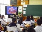 5,6校時はかしのきタイム(総合的な学習の時間)でした。1年生は宿泊体験の事前学習、2年生は修学旅行の事前学習、3年生は福祉体験の事前学習を行いました。1年生は体育館で全体的な指導を行ったあとに宿泊体験について流れなどを確認しました。2年生は多目的室で自主研修について業者の方から指導を受けました。3年生は木工室で、福祉についてDVD教材を用いて学習していました。それぞれの学年でテーマを定めて年間を通して学習を進め、文化発表会での発表や小中合同学習会での発表など資料として活用していきます。しっかりと調べ学習を進めてください。