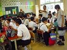 次は3つのグループに分かれて校内探検をして授業をうける教室に入りました。今日は20分ずつでしたが2教科の授業を受けてもらいました。Aグループは理科・英語、Bグループは英語・数学、Cグループは数学・理科でした。はじめは緊張気味でしたが、慣れてくると積極的に授業に参加し楽しそうでした。参観されていた保護者も笑顔でみてくださいました。