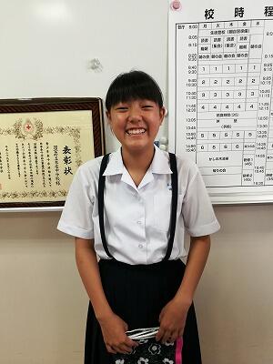 リーダーになったからには、リーダーとして責任をもって一生懸命声を出して頑張りたいと思います。また、3年生にとっては最後の体育大会になるので、1年生のリーダーの中で何事も1番に頑張りたいと思います。