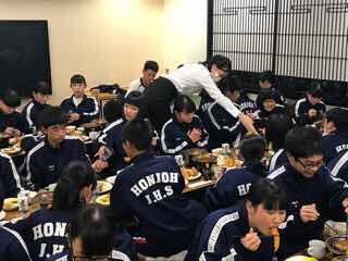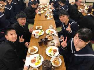 班別自主研修を終え、入浴後、ただ今夕食中です。今日のメインはハンバーグです。たくさん食べて明日も元気に乗り切りましょう!