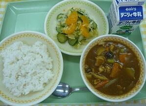 麦ご飯 チキンカレー みかんサラダ 牛乳