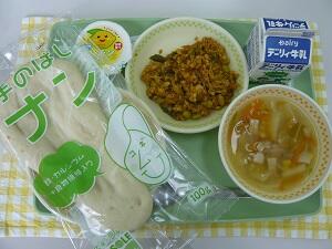 ナン 野菜スープ ドライカレー レモンゼリー 牛乳