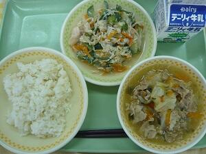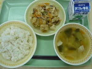 魚には、良質なたんぱく質やカルシウムなどの体をつくるうえで必要な栄養素が豊富に含まれています。また、中性脂肪を減らすなど、体によい働きをする油も含んでいる特長があります。給食でもいろいろな魚料理を多く取り入れています。成長期に丈夫な体をつくるためにも、積極的に魚を食べてほしいですね。今日の給食は、あじフライでした。