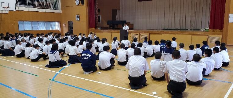 6月8日(木)朝の時間を使って、久しぶりに全校集会を開催しました。