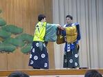 昨日、10月18日に県立学校を拠点とした芸術文化体験プログラム事業に全校生徒で参加しました。今回は本庄高校の体育館で高校生と一緒に古典芸能「狂言」を鑑賞しました。出演者団体は大蔵流狂言「山本会」の皆様で、「柿山伏」と「附子」を演じてくれました。なかなか本物の古典芸能にふれあう機会がないので、生徒も真剣にみていましたが、ことばが難しく、理解できていないところもあったようです。狂言の体験コーナーなどもあり、充実した時間を過ごすことができました。