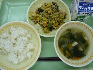 麦ご飯 牛乳 春雨スープ ビビンバ
