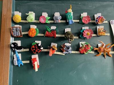今日は、1年生が美術の授業でつくった「オリジナルマグネット」を御紹介いたします。