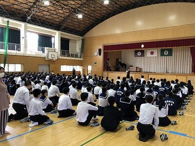 4月8日(月)に全校集会(新年度のオリエンテーション)を行いました。学習、保体、生活など約束事の確認や確