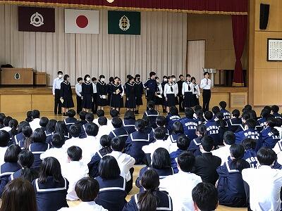 ることなどお話しいただきました。続く在校生代表のあいさつでは、臨機応変にしなやかに、そして、先輩を頼り何事