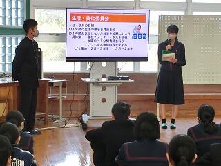 4月25日(火) 朝の時間に生徒集会を実施しました。
