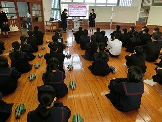 これから、成長し社会人になる生徒たちにとって、穏やかな人間関係を進めていくための方法について話がありました。生徒は、真剣に講師の話を聞いていました。