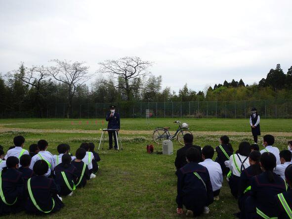 高岡警察署の方々から、自転車の乗り方を指導していただきました。八代中校区は、坂道が多く、自転車の事故がたびたび起こります。自己や怪我をしないよう十分注意して運転してください。