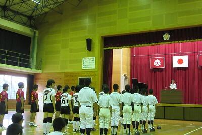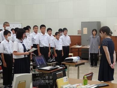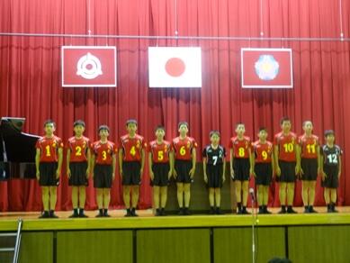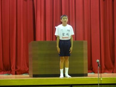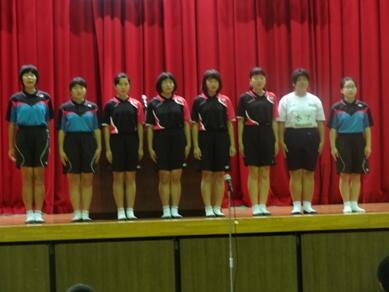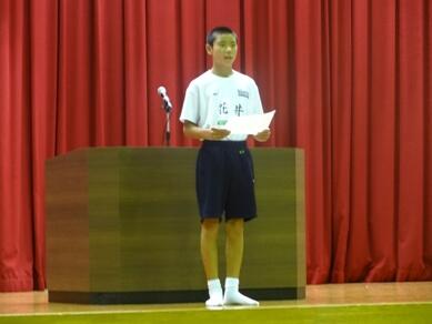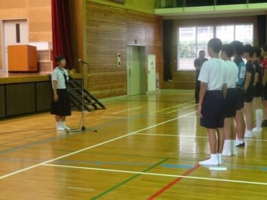 9月27日(火)に宮崎地区秋季体育大会及び県大会出場の選手激励会を実施しました。それぞれの部活動ごとに対戦相手の紹介などを行い、大会に対する抱負や決意をキャプテンが述べました。生徒会役員の激励の言葉の後、男子バレー部キャプテンが力強く選手宣誓を行いました。大会は10月1~3日の日程で行われます。新チームとして初の大舞台です。全力プレーを期待しています。