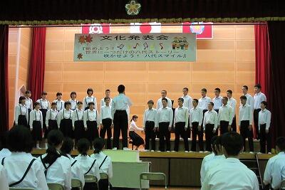10月23日(日)は文化発表会の日でした。午前中は「二人の会」による朗読とパントマイムの世界を堪能しました。その後、国語の意見発表と英語の暗唱で午前中のメニューを終え、午後からは全校合唱と総合学習の発表、そして最後に吹奏楽部による演奏で幕を閉じました。これまで、たくさんの時間をこの文化発表会のために費やしてきたこともあり、練習の成果を十分に発揮できた発表会となりました。