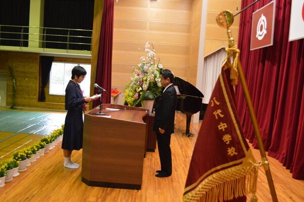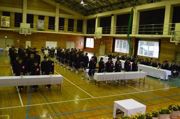 平成28年度後期の生徒会役員改選に伴い、新旧役員による退任式と任命式が10月27日(木)に行われました。これまで生徒会役員として活躍してくれたメンバーの一人一人がこれまでの活動についての感想や全校生徒への感謝の気持ちを述べました。その後、新生徒会長がこれからの抱負や意気込みを語りました。