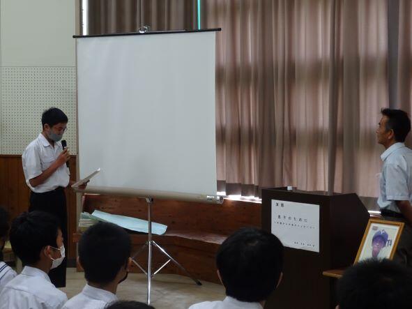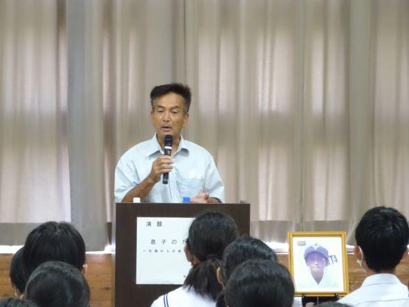 笹森義幸さんを講師に迎えて命の大切さを学ぶ教室を実施しました。当時中学1年生の息子さんを交通事故で亡くしたお話は、生徒の心に響くものでした。あらためて交通安全に努めなければならないと強く思いました。