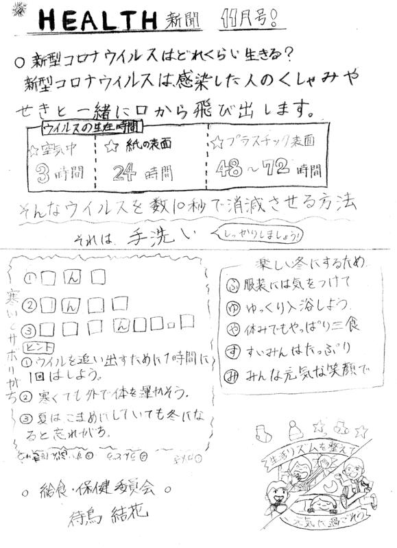 給食保体委員会が新聞を作ってくれました。