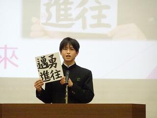 各学年・生徒会の代表による、新年の抱負等の発表がありました。