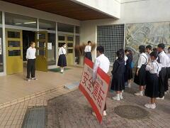 5月1日(火)の朝に5月の【あいさつ運動ボランティア】を実施しました。生徒会が呼びかけ、生徒会が主体となって実施しています。小学生も一緒になってやってくれました。