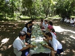 5月17日(水)・18日(木)に1年生が青島少年自然の家で宿泊体験学習を行いました。初日に青島までサイクリングし、青島神社や植物園を見学しました。帰りには、海岸や道路の清掃活動をしました。2日目は火おこし体験と飯ごう炊飯。火おこし体験では、なかなか火がつかずみんな苦労したようです。