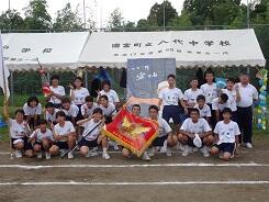 大会はソフトテニスを除いて予定どおり行われました。県大会の水泳競技に参加した1年生が50mと100mの自由形で8位入賞しました。