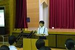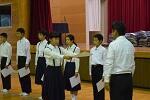 9月27日(火)に宮崎地区秋季体育大会及び県大会出場の選手激励会を実施しました。それぞれの部活動ごとに対戦相手の紹介などを行い、大会に対する抱負や決意をキャプテンが述べました。生徒会役員の激励の言葉の後、男子バレー部キャプテンが力強く選手宣誓を行いました。大会は10月1~3日の日程で行われます。新チームとして初の大舞台です。全力プレーを期待しています。