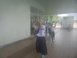 9月6日(金)に地震を想定した避難訓練を実施しました。今回は雨が降っていたため、体育館に避難しました。全員が無言で素早く、頭をしっかりとガードして避難していました。そのあとで地震体験車で【東日本大震災】や【阪神淡路大地震】を体験しました。